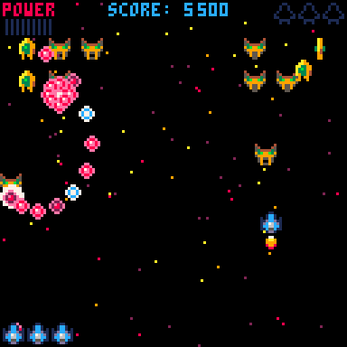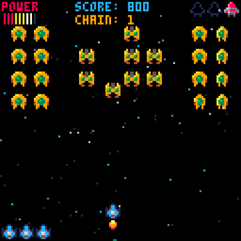 Nice job, i love the way you transform space invaders in a modern recriation. The peculiar point the change for good, is a evolution of shoot for each acumulation of power, freedom do navegate using spaceship, effect of transition on each wave and the super power that drop from enemy. 👌😁